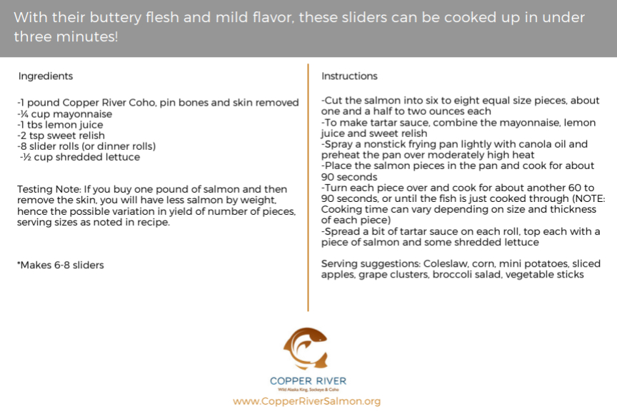 Testing Note: If you buyone pound of salmon and then remove the skin, you will have less salmon by weight, hence the possible variation in yield of number of pieces, serving sizes as noted in recipe.